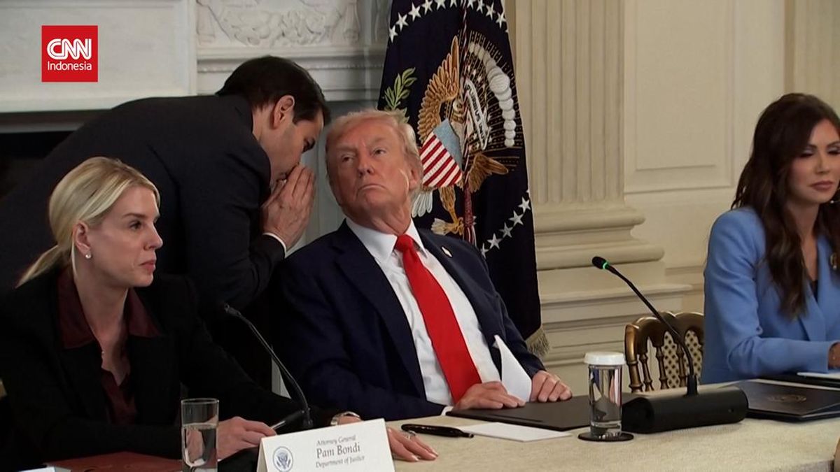 Tampak Menlu AS Marco Rubio menyerahkan catatan tersebut saat agenda rapat di Gedung Putih, Rabu (8/10).