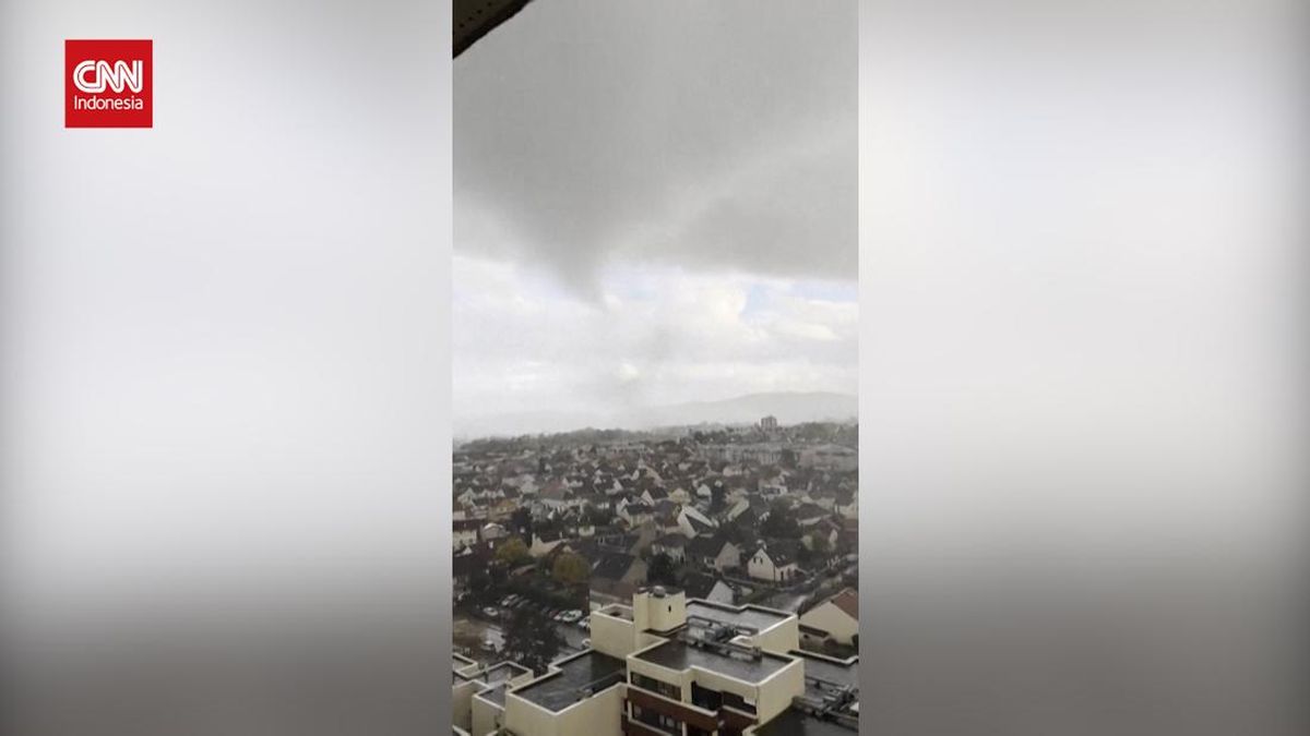 Saksi mata merekam angin puting beliung melanda kawasan Ermont, Prancis, pada Senin (20/10).